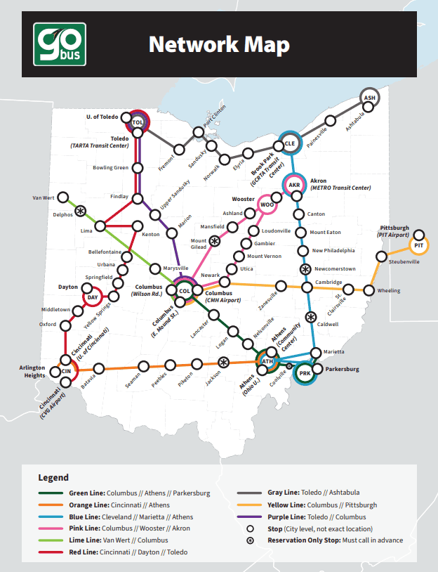 You can travel from Findlay and Lima to anywhere in the state of Ohio on GoBus! Fares are $5 (minimum) and $25 (maximum) – plus taxes and fees. Tickets are bought online at the GoBus website (https://ridegobus.com/) or by calling 888-95-GOBUS. You can also connect to the other lines in major cities.